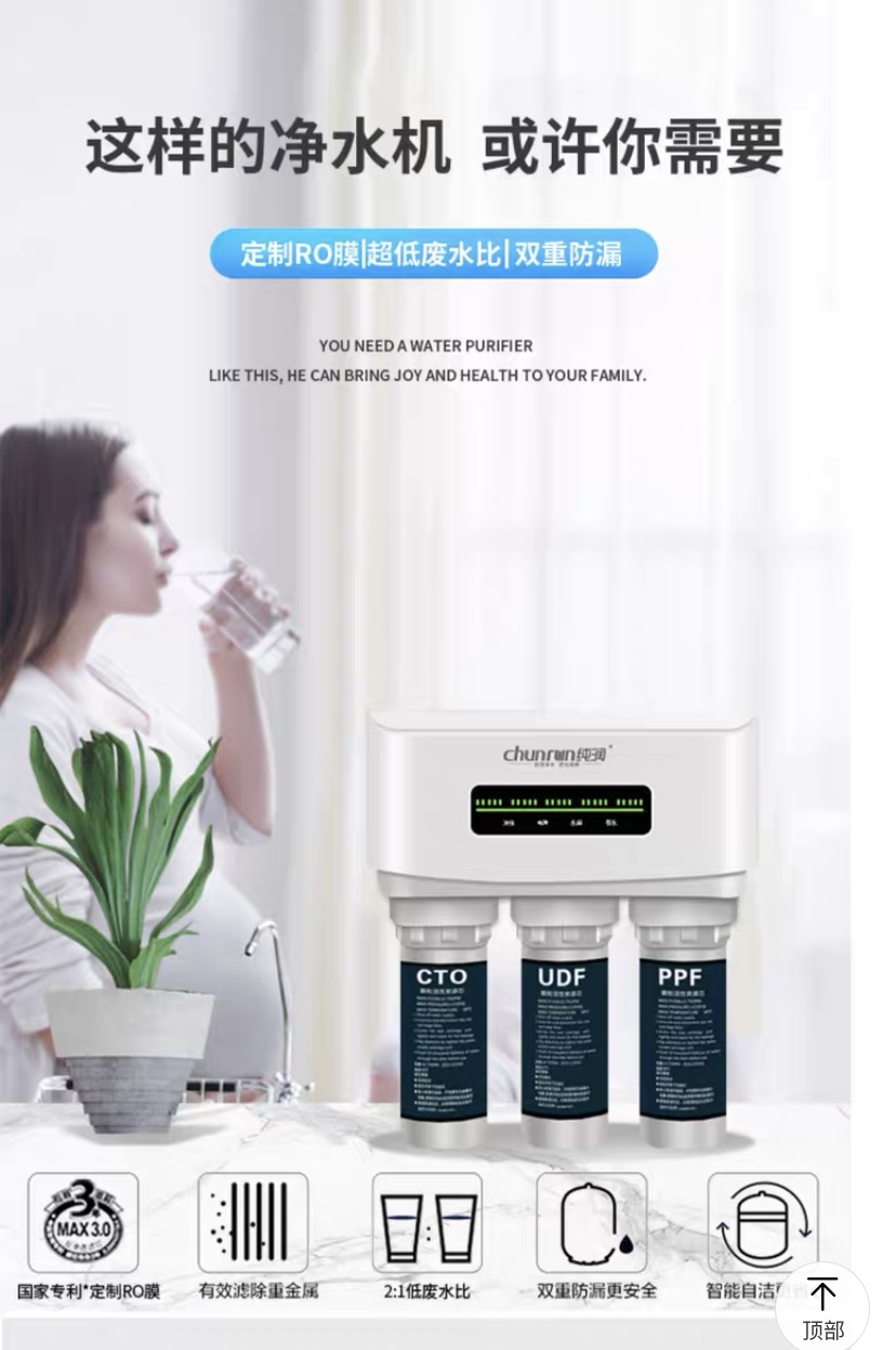 纯润净水器家用直饮净水机大流量五级厨房自来水过滤器RO反渗透
